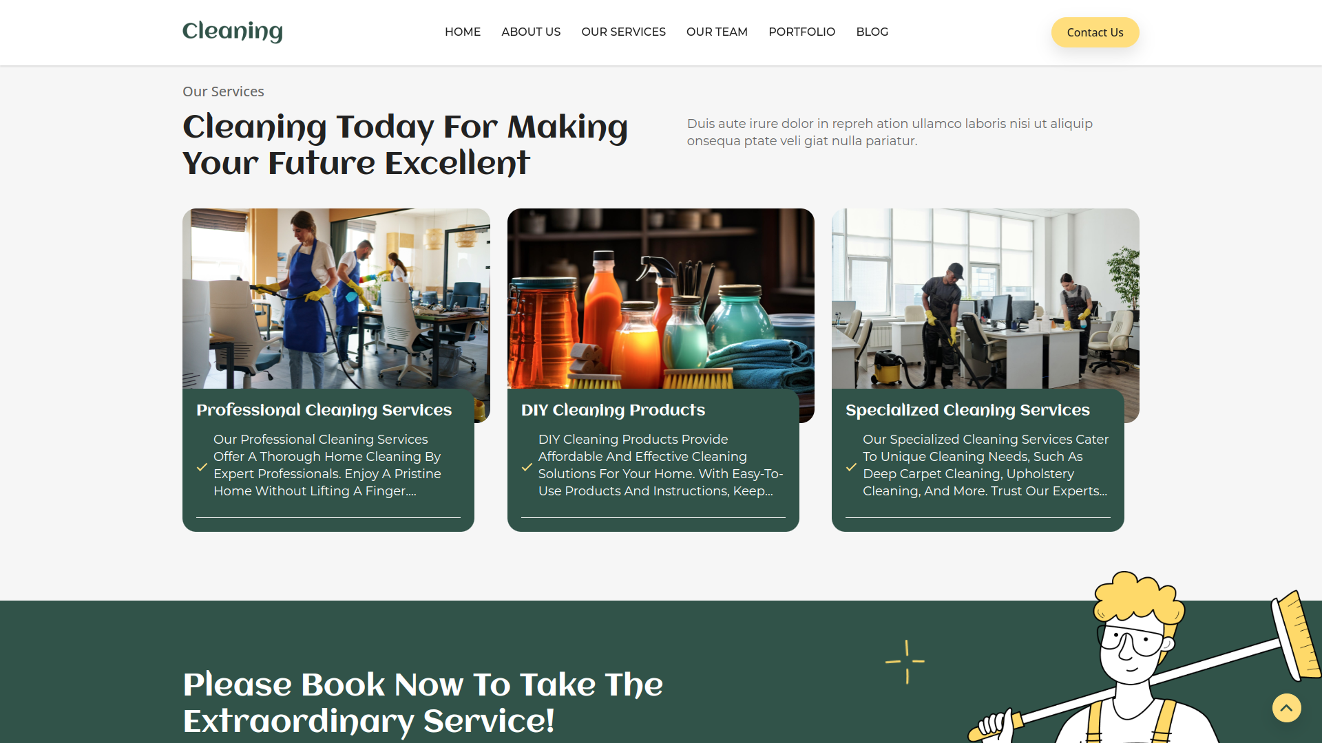 The Home Cleaning Theme empowers you to design a website that reflects the clean and organized haven you create for your clients. Upload high-quality photos showcasing sparkling kitchens, spotless bathrooms, and dust-free living areas. Consider featuring "before and after" photos to visually demonstrate the transformative power of your cleaning services. Highlight your commitment to using eco-friendly products for a healthy and sustainable clean.