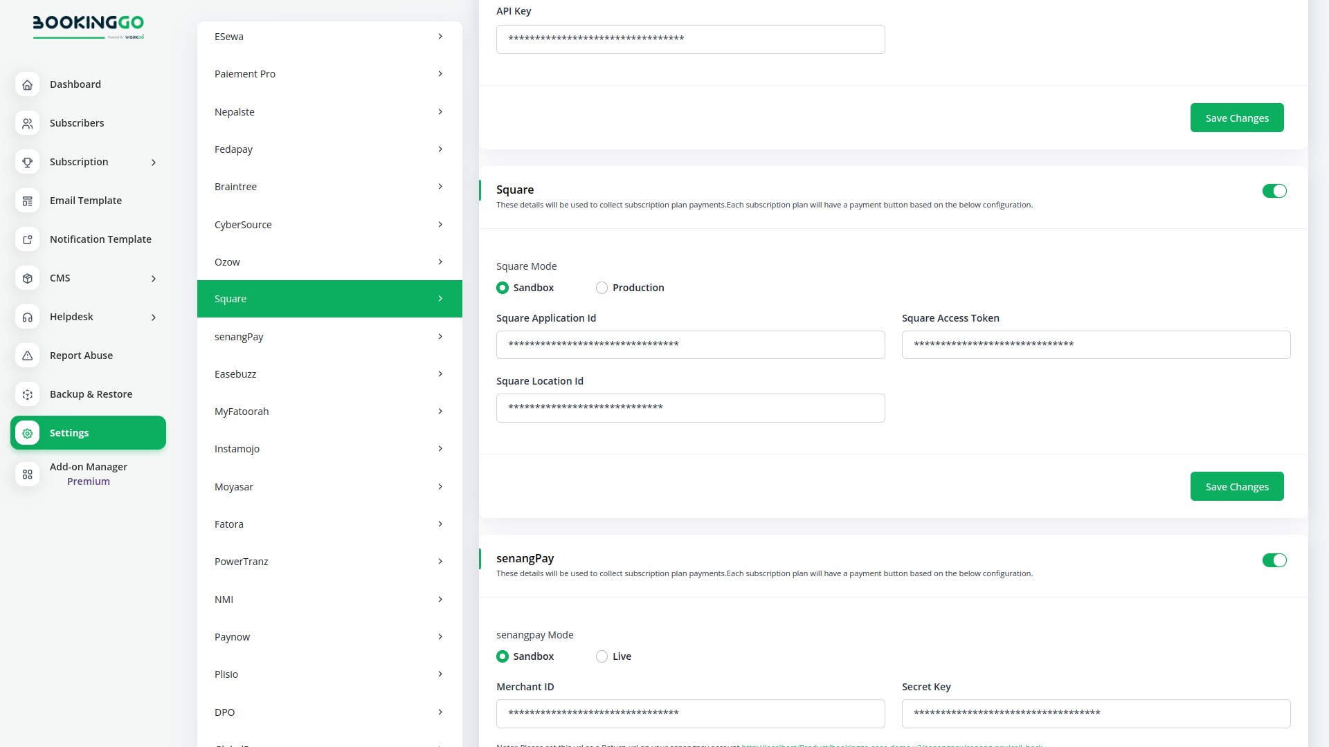 BookingGo SaaS introduces seamless integration with the Square Payment Gateway, revolutionizing your booking and payment experience. Now, managing appointments and transactions is more convenient than ever—all within a unified platform. Say goodbye to the hassle of switching between multiple systems and welcome a smoother, secure, and efficient process for all your booking and payment needs.